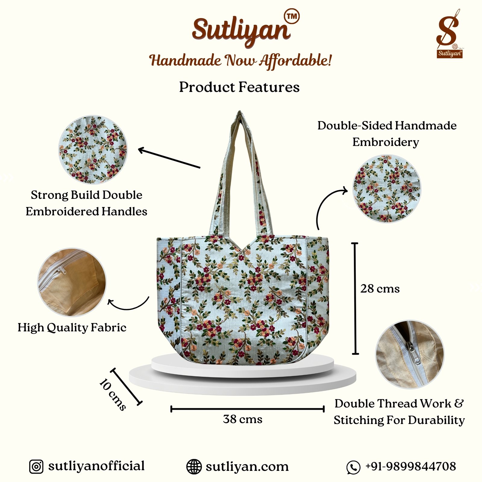 Celebrate the elegance of Indian handicraft with the SUTLIYAN Women’s Gujarati Handmade Sherwani Embroidery Regular White Tote Bag, a true masterpiece of Gujarati artistry. Thoughtfully handcrafted with intricate embroidery, this fashionable white tote bag blends cultural heritage with practicality, making it a must-have accessory for women who value both tradition and style.